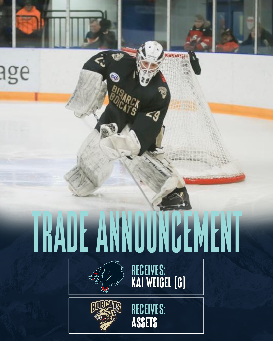 The Anchorage Wolverines have acquired goaltender Kai Weigel from the Bismarck Bobcats in exchange for future assets.