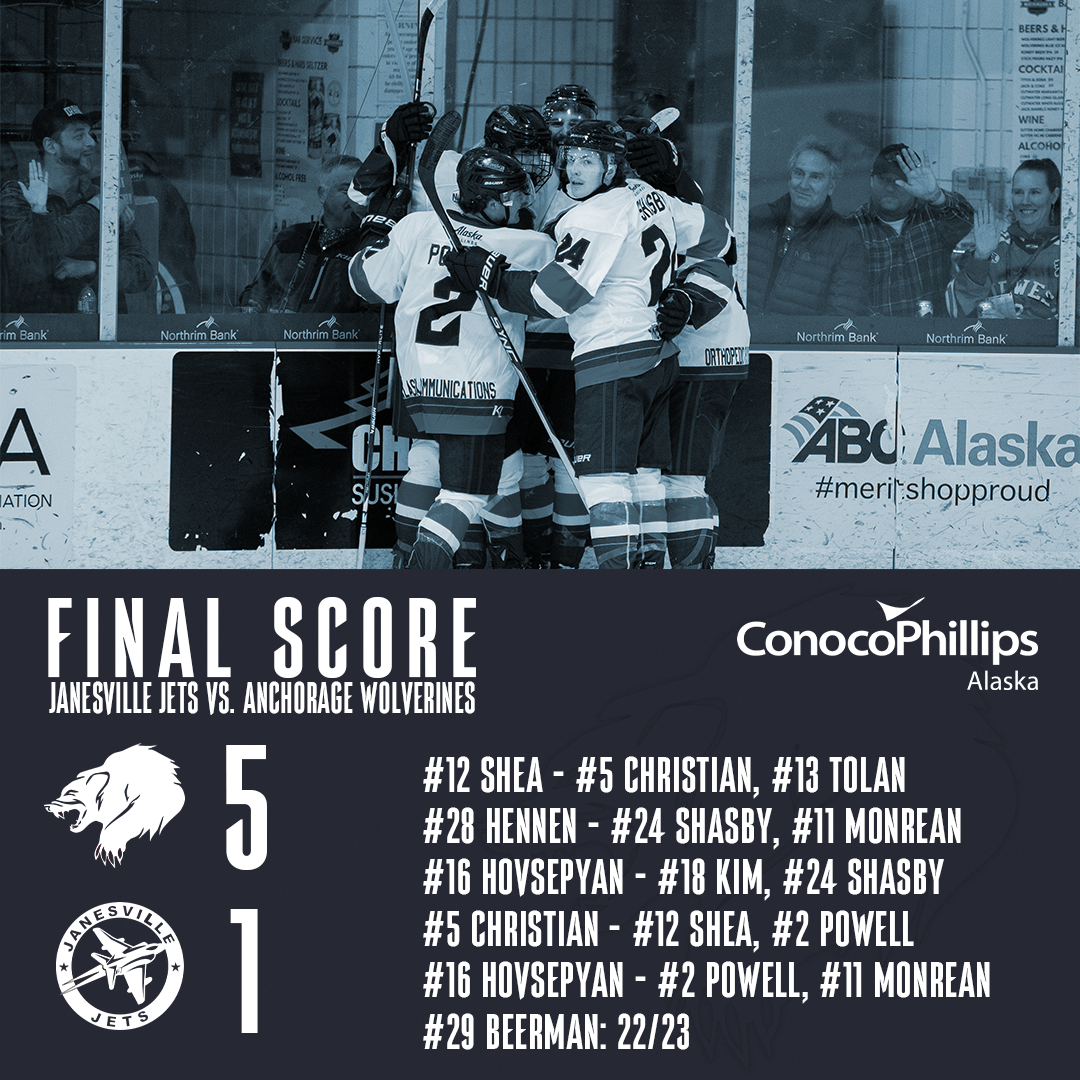 The Anchorage Wolverines completed their last regular season home games with a clean sweep after a 5-1 wash against the Janesville Jets.